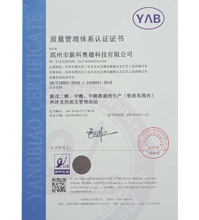 濱州市新科奧德科技有限公司成立于2007年,幾年來企業規模不斷擴大,經濟效益與社會效益不斷提高,實現利稅連年遞增,生產經營由過去單一產品的開發模式向多元化模式發展,公司坐落于黃河三角洲美麗的董永故里,呂劇起源地——山東博興,是新戊二醇、甲酸...